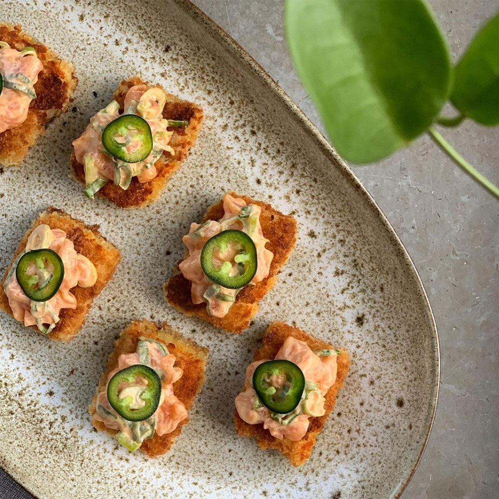 PANKOPANERAT CRISPY RICE MED HET LAX OCH JALAPEÑO