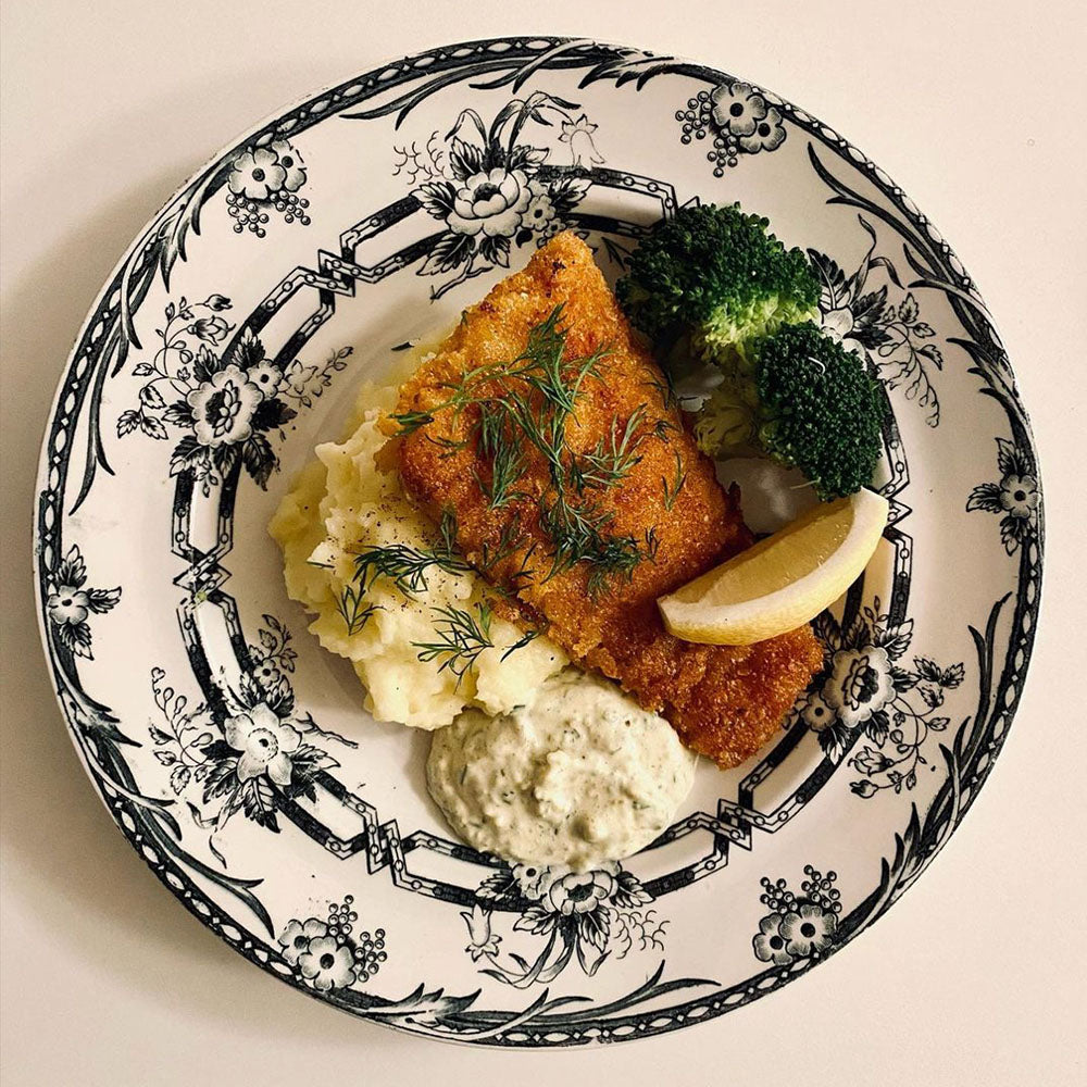 PANERAD RÖDSPÄTTA MED POTATISPURÉ & REMOULADSÅS